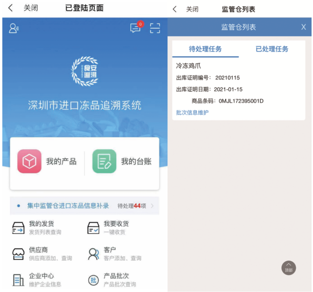 “i深圳”APP-冷链食品追溯模块批次信息页面